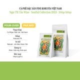 Về sản phẩm (Description) | TR được nghiên cứu và phát triển nhằm đáp ứng nhu cầu sản xuất cà phê chất lượng cao, với khả năng sinh trưởng mạnh mẽ, thích nghi tốt với nhiều điều kiện thổ nhưỡng. Giống TR không chỉ giữ được sự mạnh mẽ vốn có, mà còn mang đến chất vị mượt mà, đậm đà. Với giống cà TR, chế biến khô với men rượu cần - một nguyên liệu bản địa giàu bản sắc địa phương, một đời sống văn hoá của bà con vùng Tây Nguyên tạo nên nốt hương say đắm của núi rừng, của cảm xúc về một miền Cao nguyên huyền thoại. Cà phê được thu hái chín 100%, sau đó rửa sạch và làm ráo dưới nắng, đảm bảo phù hợp độ ẩm để lên men với men rượu cần trong một tuần (phù thuộc thời tiết và nhiệt độ môi trường), sau đó tiếp tục được phơi đến khi đạt độ ẩm phù hợp nhất. The TR variety was researched and developed to meet the demand for high-quality coffee production, with vigorous growth and strong adaptability to various soil conditions. TR not only retains its inherent robustness but also delivers a smooth and full-bodied flavor profile. With the TR variety, we apply a dry processing method using ruou can yeast — a native fermentation culture rich in local identity and a reflection of the cultural life of the Central Highlands communities. This adds a mesmerizing aroma evocative of the forests and the legendary spirit of the Highlands. The coffee cherries are harvested at full ripeness, then thoroughly washed and sun-dried to reach the ideal moisture level for fermentation with ruou can yeast, which typically lasts about a week (depending on weather and ambient temperature). The coffee is then further dried until it reaches optimal moisture for storage. |